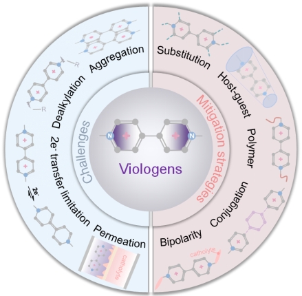 在“碳达峰、碳中和”目标驱动下,以光伏、风电为代表的清洁可再生能源成为能源结构的主体。然而,此类新能源受自然条件影响,存在间歇性、波动性和不可控等问题,严重制约了其大规模接入电网与广泛应用。水系有机液流电池作为一种新型的大规模储能技术,因其低成本、高安全性以及功率与容量可独立设计等突出优势,被认为是解决新能源大规模储能瓶颈的理想方案。