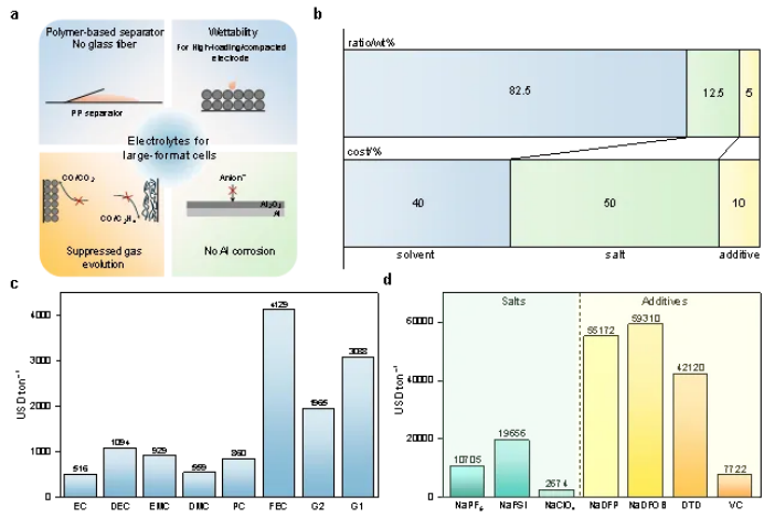钠离子电池凭借其钠资源储量丰富、成本低廉的优势,已成为锂离子电池之后最具商业化潜力的储能技术之一。然而,其实际应用受限于较低的能量密度。提高其能量密度的可行路径是采用高电压、高容量的正极和负极材料,而这些电极材料对电解液提出了苛刻且多样的要求,包括耐高电压氧化、适应大体积膨胀、抑制副反应等。因此,针对特定电极体系设计匹配的液态有机电解液,是解锁钠离子电池全部潜力、推动其商业化的关键。