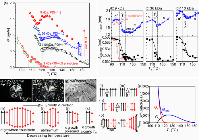 2. 2026年1月6日,杨书桂副教授、刘峰教授和Goran Ungar教授联合英国谢菲尔德大学Xiang-bing Zeng教授提出了一种高分子材料“多晶态自中毒”结晶新机制。该机制突破了经典粗粒化结晶理论的局限,清晰阐释了高分子晶体生长速率随过冷度增大呈现极小值的反常现象,揭示了多晶态高分子结晶动力学慢的核心本质,为解决低结晶度高分子制品耐热性不足、易物理老化变脆的性能缺陷提供了理论指导。相关工作以“Polymorphic Self-Poisoning in Poly(Lactic Acid): A New Phenomenon in Polymer Crystallization”为题在国际知名学术期刊《物理评论快报》上在线发表。