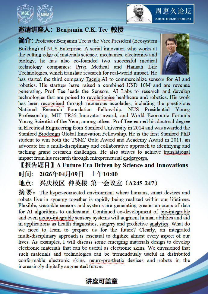 周惠久论坛 | Benjamin C.K. Tee 教授做客周惠久论坛开展主题讲座
