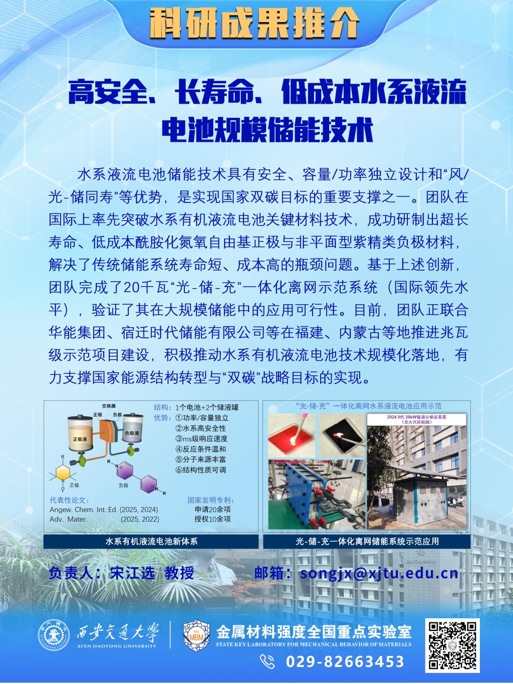 高安全、长寿命、低成本水系液流电池规模储能技术