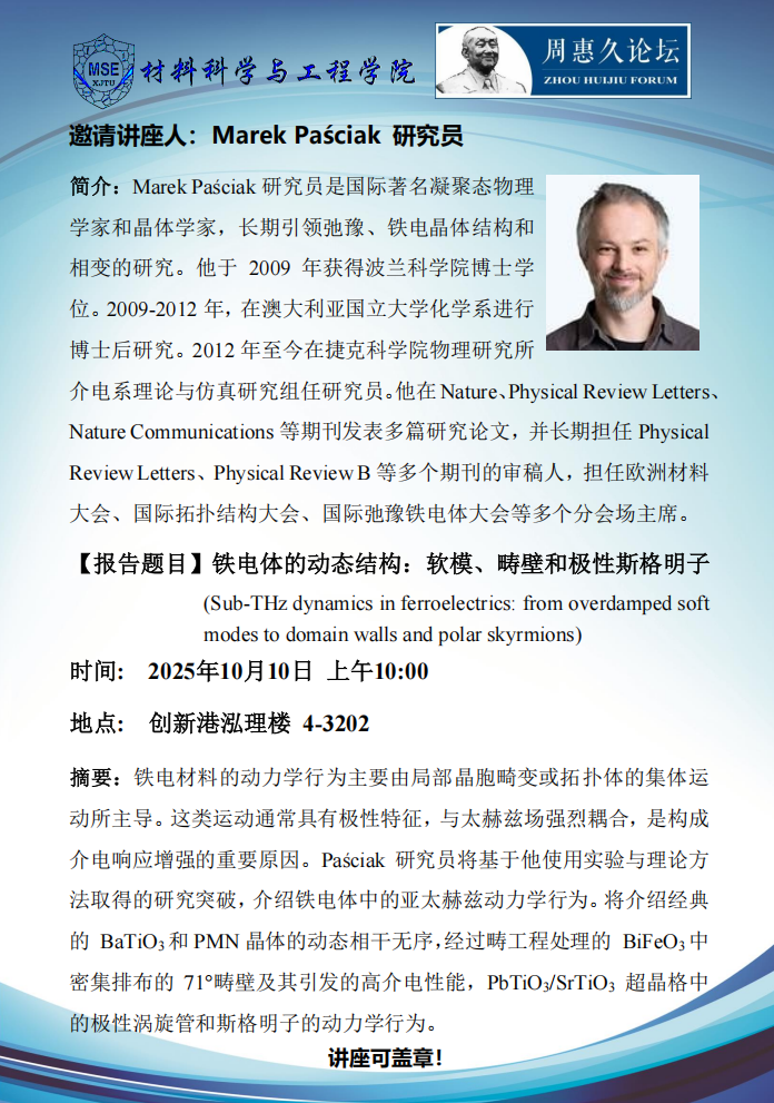 周惠久论坛 | Marek Paściak 研究员做客周惠久论坛开展主题讲座